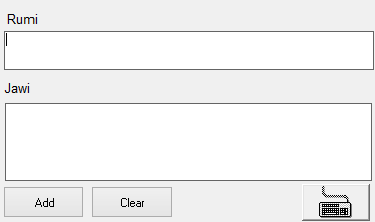 2. Pada kotak 'Jawi', masukkan perkataan jawi. Untuk memasukkan perkataan jawi tekan butang 'Keyboard'.